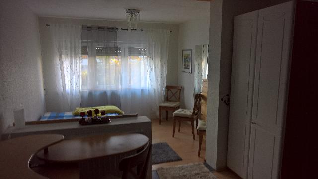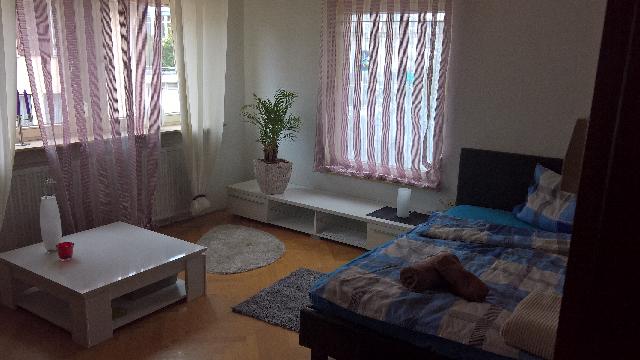 Kurzfristig frei geworden; nur befristet von 1 bis max. 12 Monate; nicht zur Dauermiete oder als Meldeadresse; Die Warmmiete inkl. NK, Bettw?sche, K?chenger?te/Geschirr usw. betr?gt 520 ?, famili?re Atmosph?re Zimmer ca. 4 x 5 m (ca. 20m) (Beispielbilder) mit Parkettboden, Holzdecke, Nichtraucher, Rauchen nur auf Terrasse m?glich. Zus?tzlich nutzbare Gemeinschaftsfl?che ca. 56m? mit Terrasse; K?che/Esszimmer; Bad, Wohnzimmer, Waschmaschine (im Keller) WLAN vorhanden, zur Gemeinschaftsnutzung.in Zweifamilienhaus. Ideal f?r Leute mit Werksvertr?gen, befristeten Vertr?gen oder Projekten, als Zweit-/Dienstwohnsitz f?r Wochenendpendler. Gerne auch an Firmen f?r Mitarbeitern aus anderen L?ndern die vor?bergehend hier arbeiten. Werkstudenten oder Studenten. 3 Gehminuten zum Bahnhof, 10 Min nach Ludwigsburg Stadtmitte, sehr verkehrsg?nstig. Ausstattung: 140 cm Bett, Schrank, keines Sofa oder Sessel, Kommode, Schreibtisch. Bettw?sche und 2 Handt?cher werden auch gestellt. Bad/Toilette mit Wanne vorhanden, Gemeinschaftsnutzung mit Zimmernachbar auf dem Stockwerk Wohnzimmer m. Fernseher (SAT), K?che/Esszimmer (Geschirr, T?pfe usw. selbstverst?ndlich vorhanden) und Terrasse im EG zur Gemeinschaftsnutzung; Rauchen nur auf der Terrasse Waschmaschine zur Gemeinschaftsnutzung Noch eine Anmerkung zur Anfrage: \\\"noch frei?\\\" ist KEINE Anfrage und darauf werde ich auch nicht mehr antworten Wer, ab wann, wie lange und die Angabe der Kontaktdaten ist das mindeste, das man von einer Anfrage erwarten kann. Ich versuche mich ja auch in ganzen S?tzen auszudr?cken